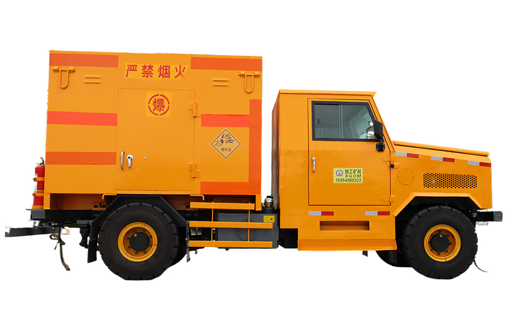 地下無軌爆破器材運輸車是專門為地下礦山設計的一種專用運輸設備,可改善勞動條件、緩解人員疲勞,保證運輸安全,提高生產效率,是礦山安全生產和現(xiàn)代化礦山不可缺少的運輸設備。